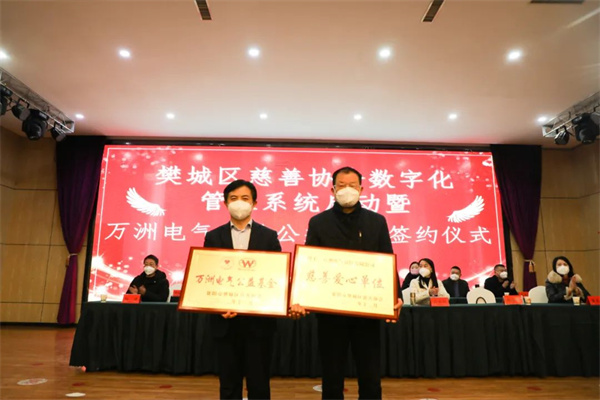 12月30日下午,在樊城区慈善协会举办的“ 樊城区慈善协会数字化管理系统启动暨galaxy银河电气慈善公益基金签约”仪式上,galaxy银河电气为樊城区慈善协会捐款13万元成立“galaxy银河电气公益基金”并获“慈善爱心单位”荣誉称号。galaxy银河电气董事长、总经理赵世运参加签约仪式。